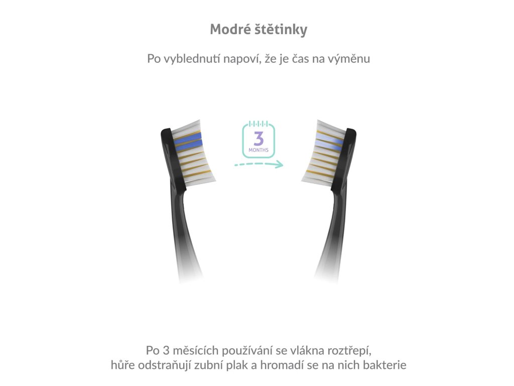 Sonická technologie kartáčku se postará o precizní odstranění zubního plaku a protože spočívá v drobných vibračních pohybech, zůstává dostatečně šetrná k citlivým zubům i dásním.